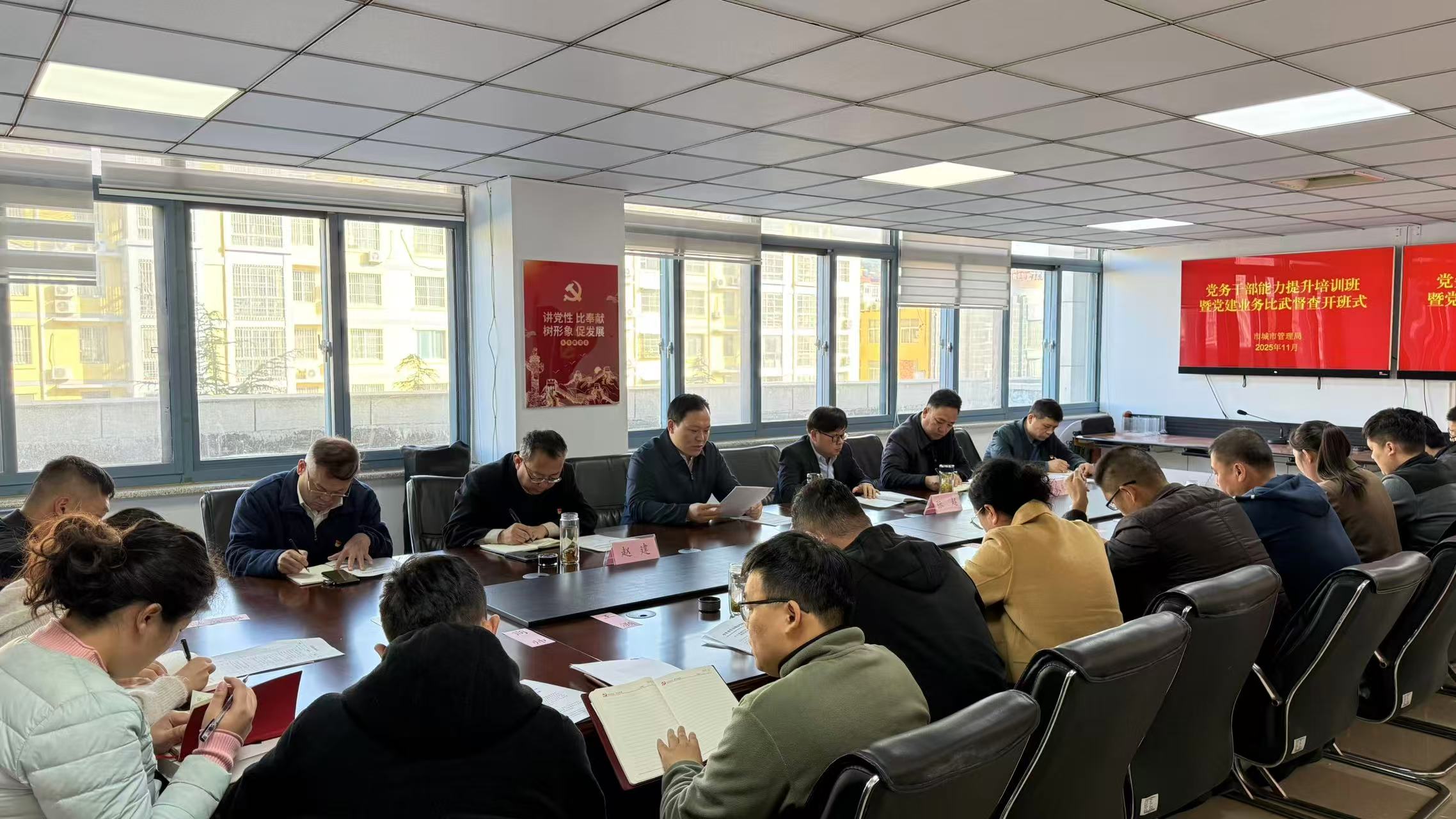 为深入学习贯彻习近平总书记关于党的建设的重要思想和党的二十届四中全会精神,认真落实市委组织部关于基层党组织书记培训要求,全面提升党务工作者能力和水平,11月10日至14日,市城市管理局开展党务干部能力提升学习培训班暨党建业务比武督查活动。局党组书记、局长吕济禹出席并作动员讲话,局属党组织书记、副书记、委员新转正党员、预备党员、入党积极分子参加