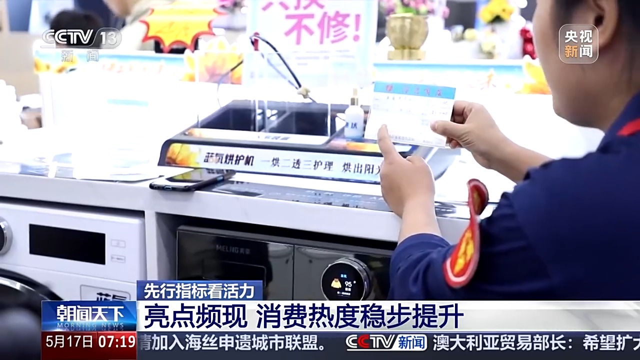 随着消费品以旧换新政策加力扩围,政策红利加速释放,国家信息中心监测主要家电品类网络零售数据显示,4月相关家电网络零售额同比上升13.2%,绿色化、智能化消费趋势愈加明显。
