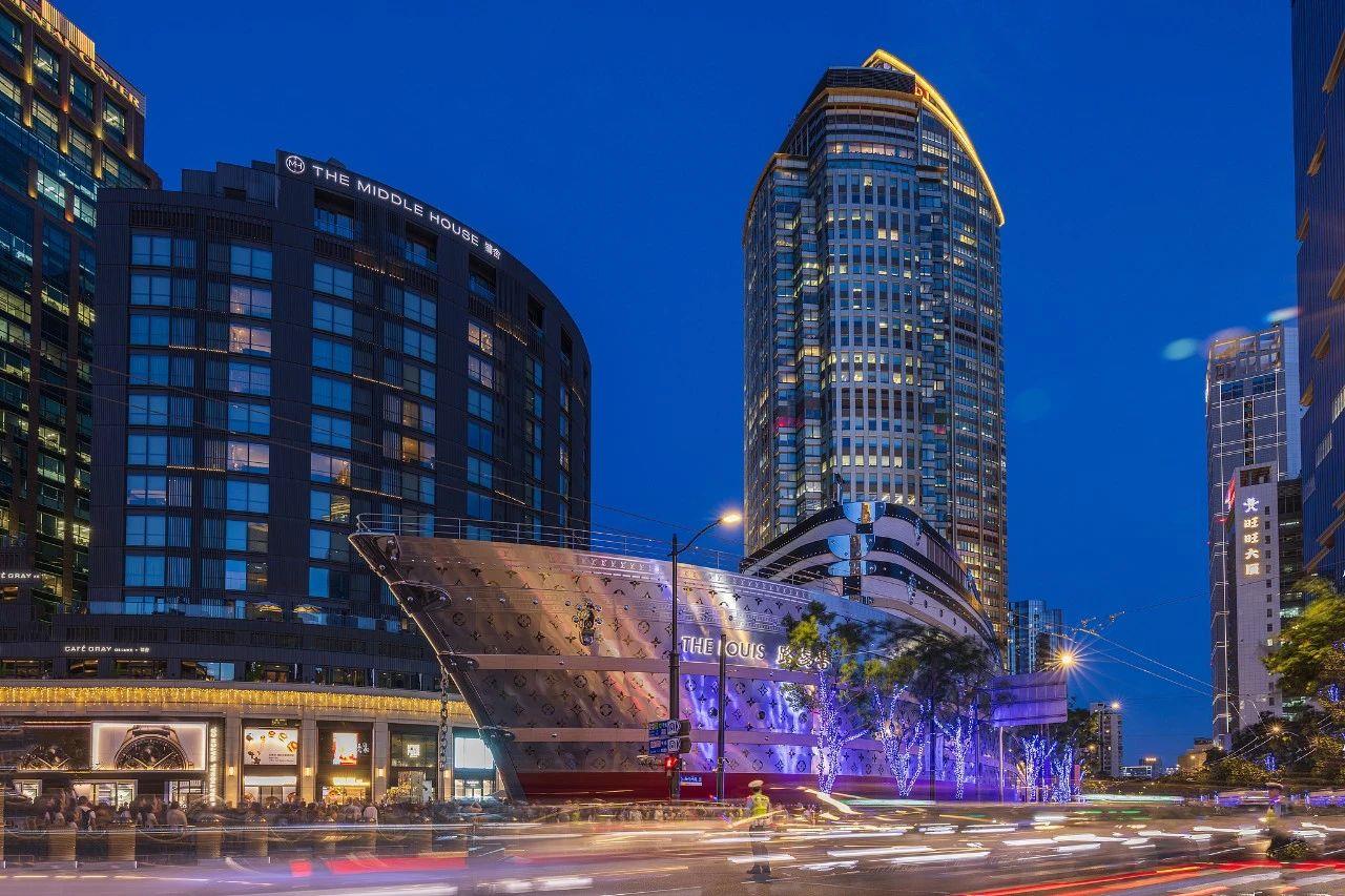 而不久前,上海静安兴业太古汇门前,一艘高30米、长114.5米的“巨轮”——“路易号”揭开神秘面纱。红银相间的船身,以经典LV(路易威登)旅行箱叠加堆砌而成,巨型锁扣与铆钉的金属质感不仅延续了品牌深厚的历史基因,也映衬出上海这座城市的海港气质。