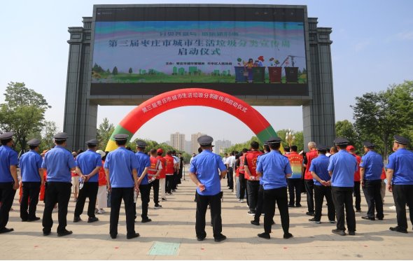 5月21日,枣庄市在光明广场举办第三届城市生活垃圾分类宣传周启动仪式。
