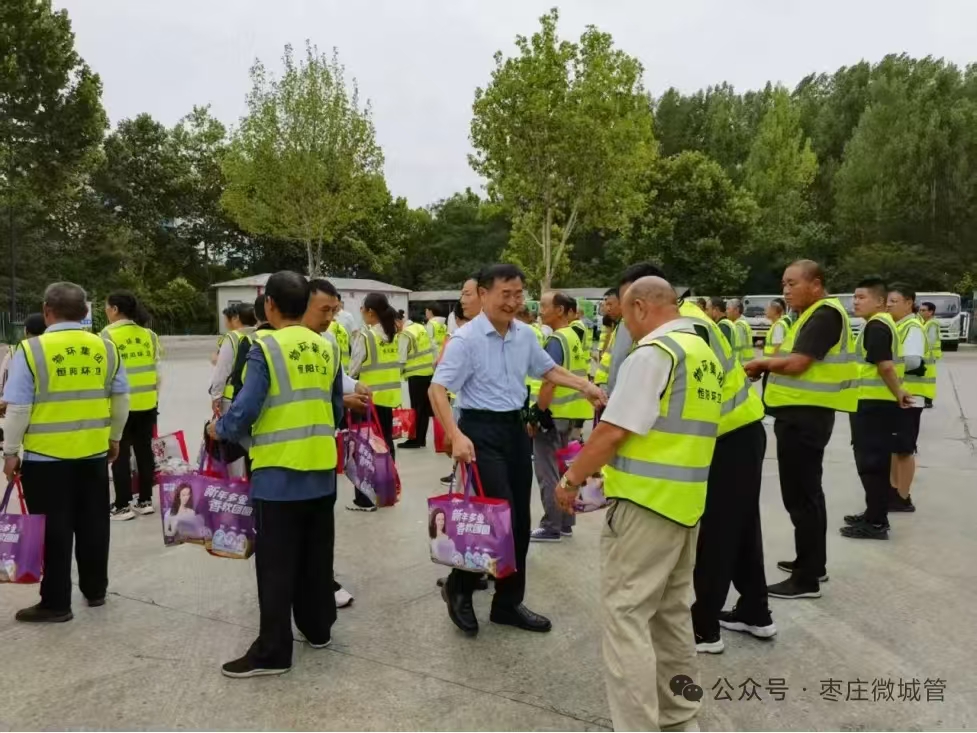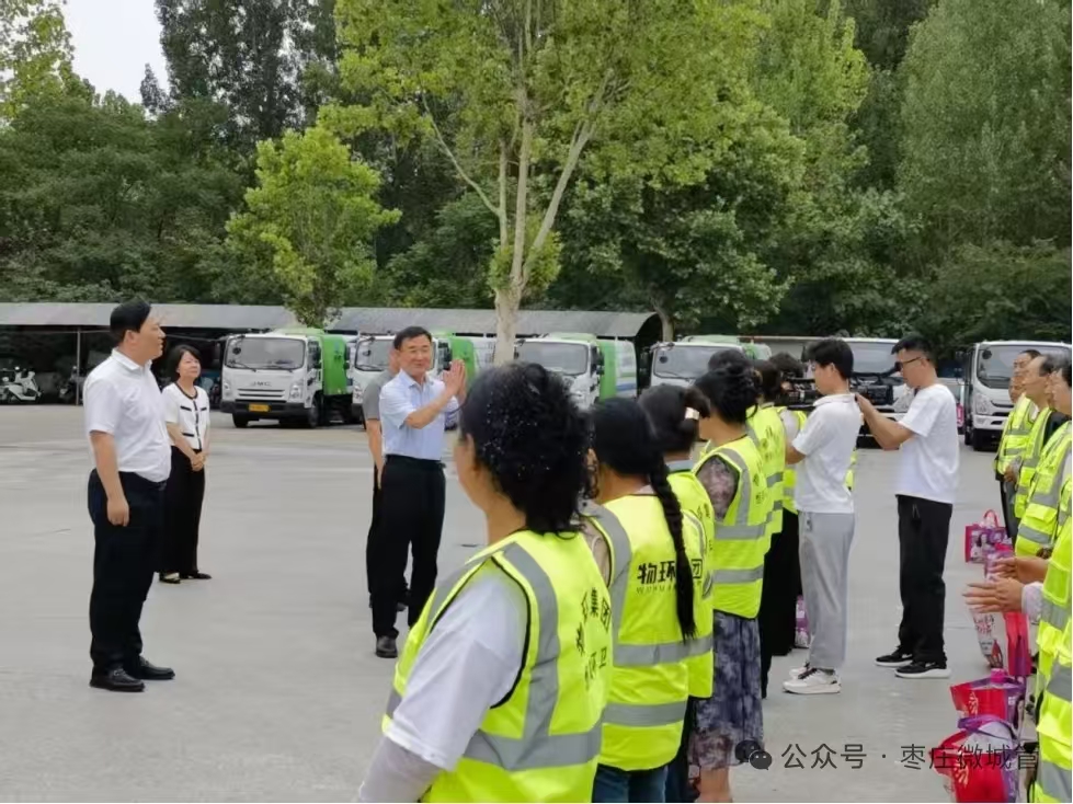 2025年6月18日下午,枣庄市组织开展“夏送清凉”慰问环卫工人活动,为奋战在高温一线的环卫工人送去党和政府的关怀。市委常委、副市长张庆伟,市政府副秘书长张伟,市城市管理局党组书记吕济禹,薛城区委常委、副区长庞伟等相关负责同志参加。