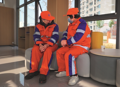 初冬的早晨,空气中已有微微凉意。环卫人员韩桂华像往常一样,忙完早上的清扫工作,走进台儿庄区竞技体育学校旁边的城管驿站喝水休息。