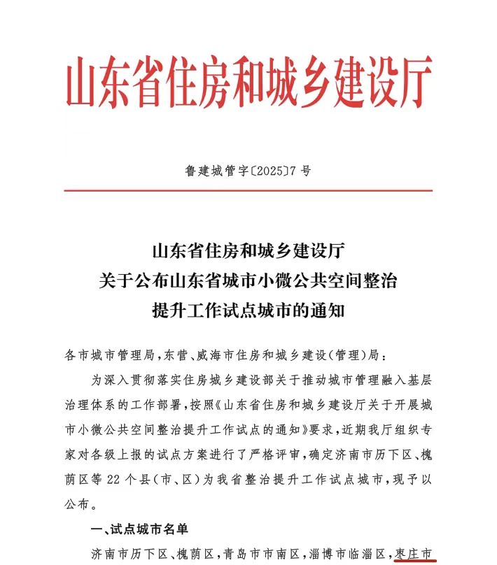 城市空间的每一处“细微变化”,都汇聚着民众的“巨大幸福”。据了解,为推动城市管理融入基层治理体系,住房和城乡建设部在全国范围内开展城市小微公共空间整治提升试点工作,提出要以安全、实用、便利、美观为原则,以解决群众反映的急难愁盼问题为重点,打造美丽宜居的生活空间,不断满足群众对美好生活的向往,近期,枣庄市市中区被省住建厅确定为山东省城市小微公共空间整治提升工作试点城市。