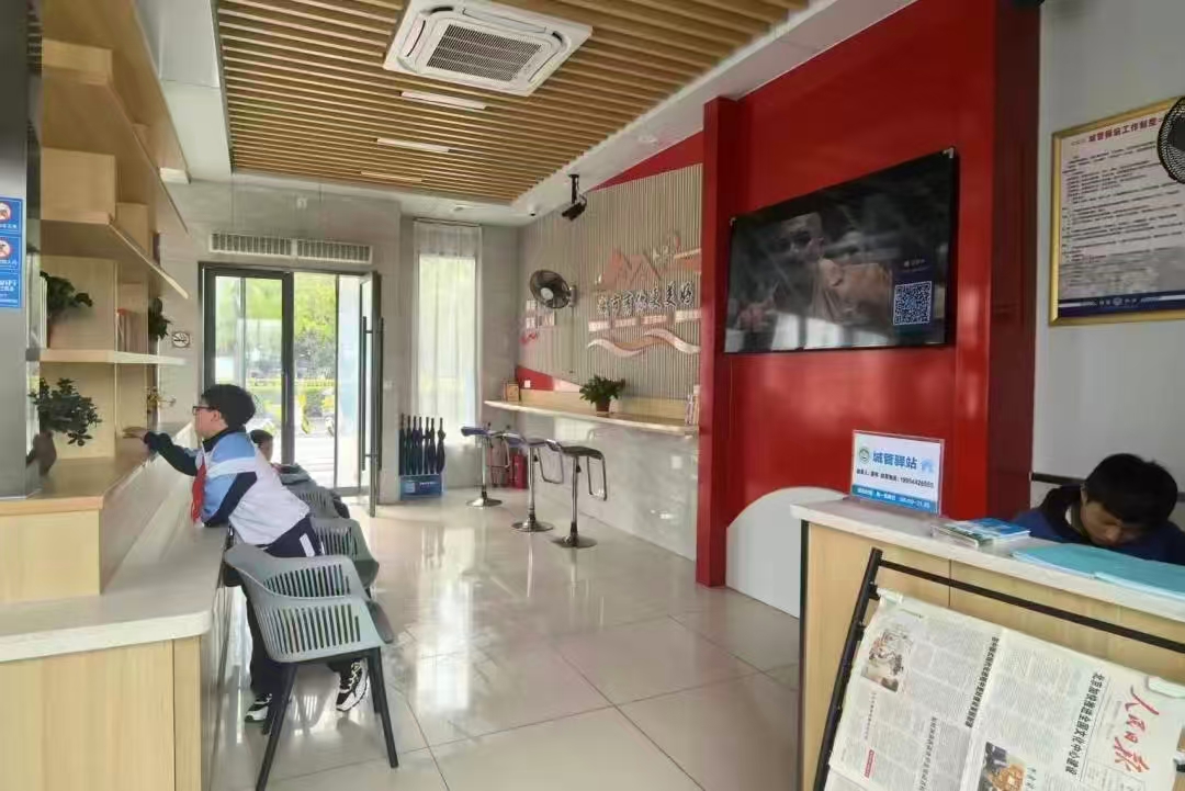 走进台儿庄体校旁的城管驿站,青砖灰瓦的建筑风格与运河文化墙相映成趣。休憩区内,环卫工人正用充电设备给手机补能,阅览区的市民翻阅着地方史志,咨询服务台前,游客询问着景区路线……这里不仅是城市管理的“前沿哨所”,更成为传递城市温度的“文化客厅”。